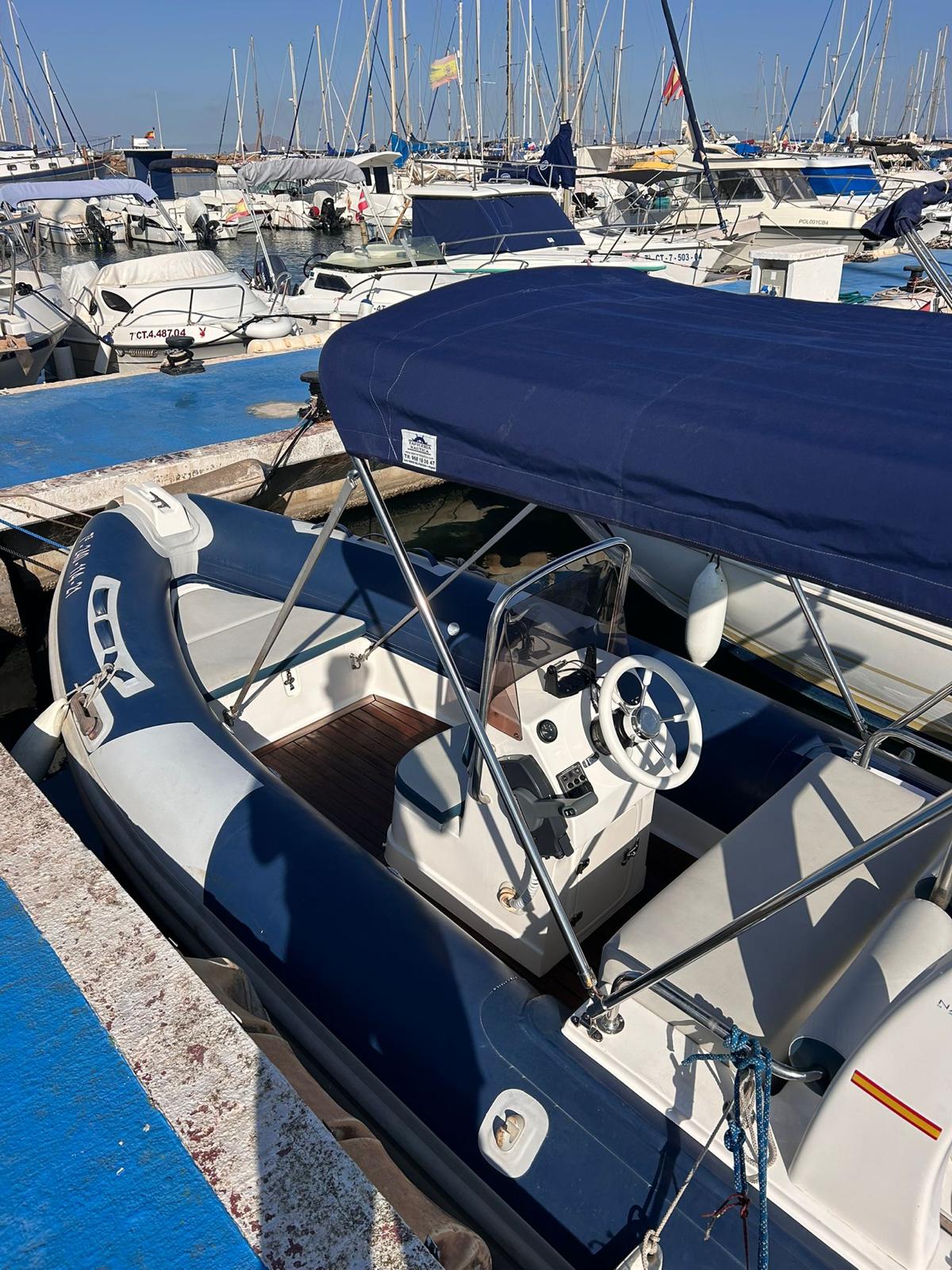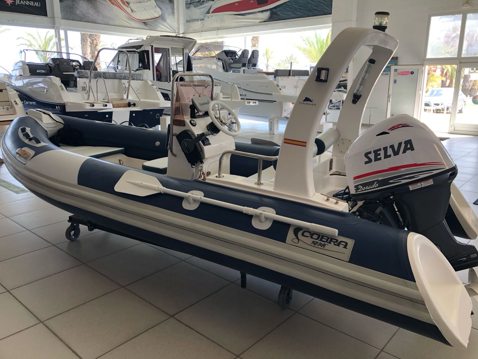 Embarcación semirrígida Cobra RIB 480 de 2021, ideal para disfrutar del mar con confort, estilo y rendimiento. Equipada con motor Selva de 60 CV, ofrece una navegación ágil, eficiente y segura, perfecta tanto para salidas familiares como para deportes acuáticos.