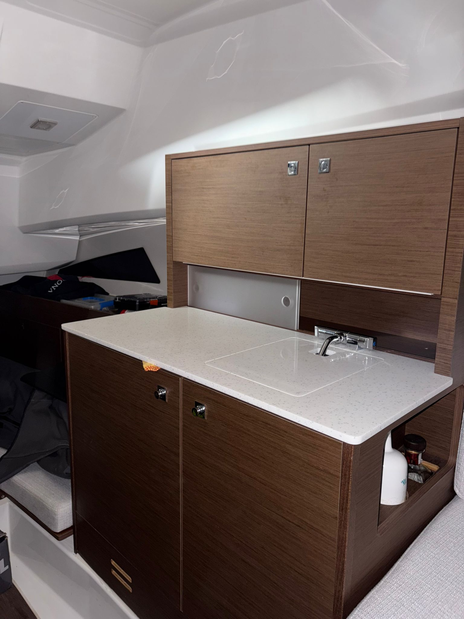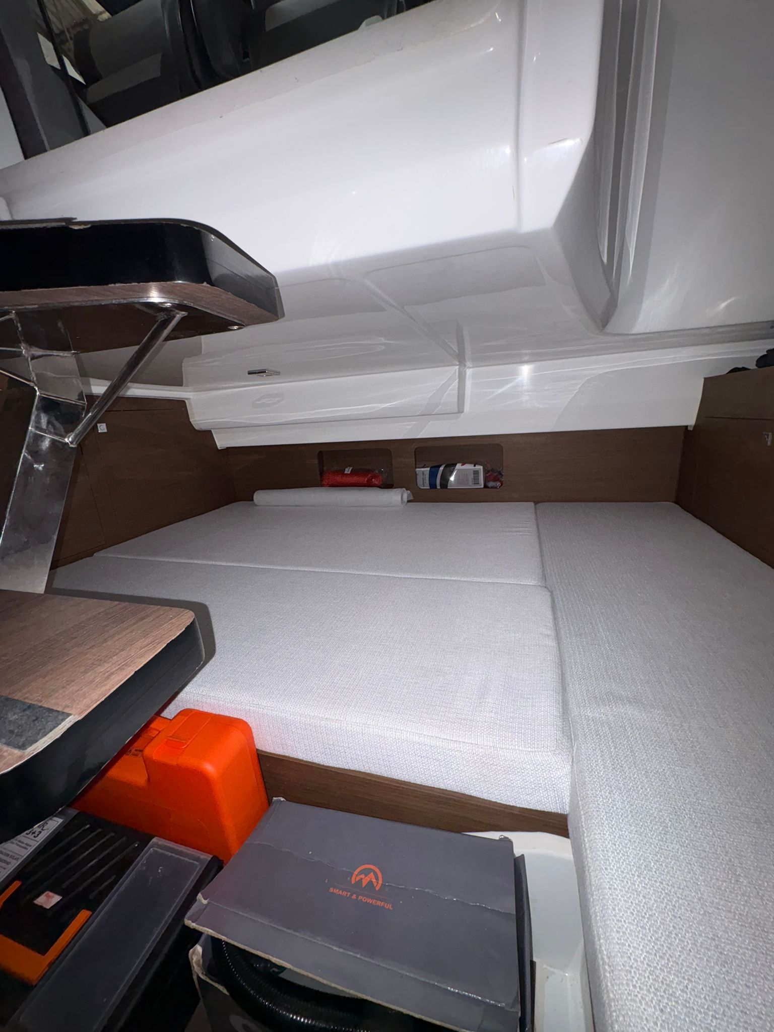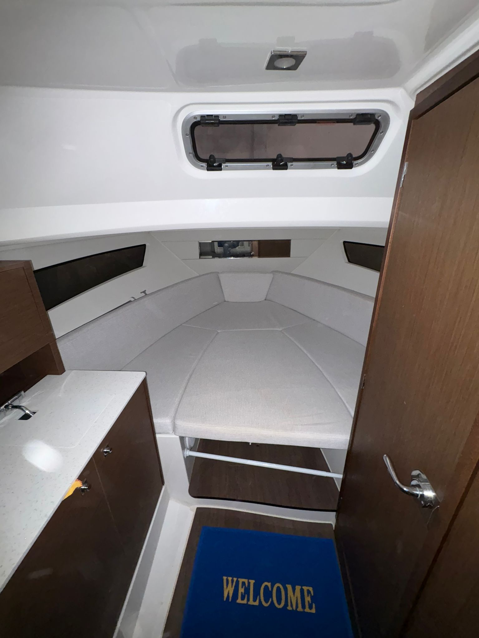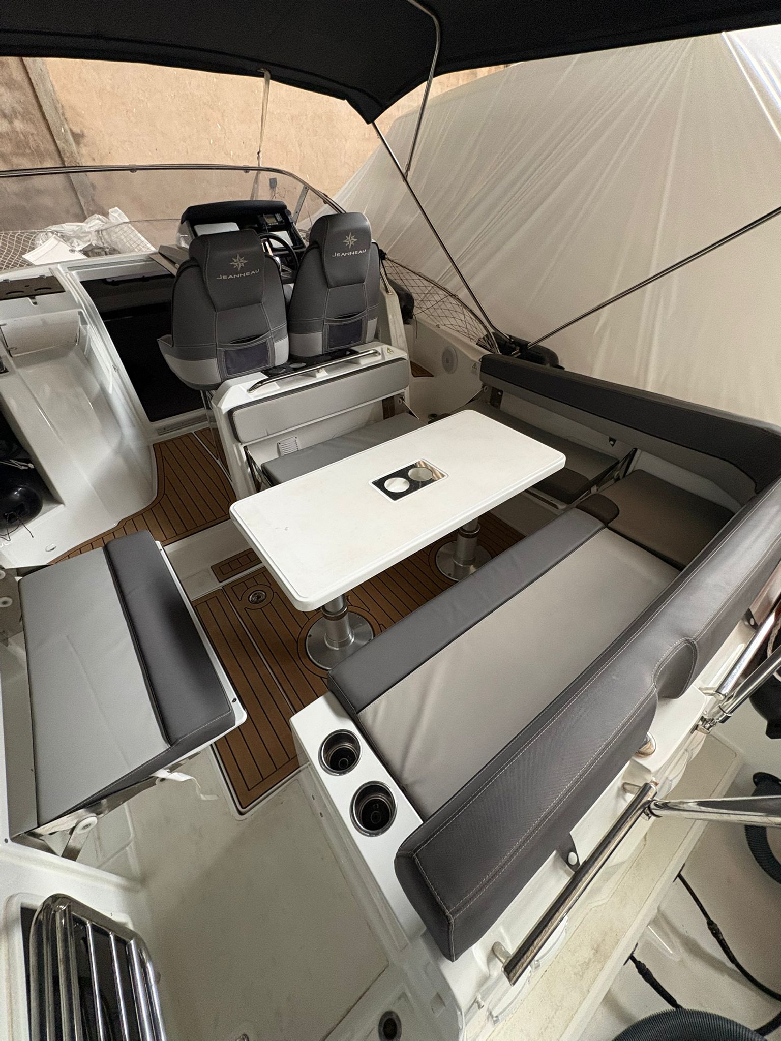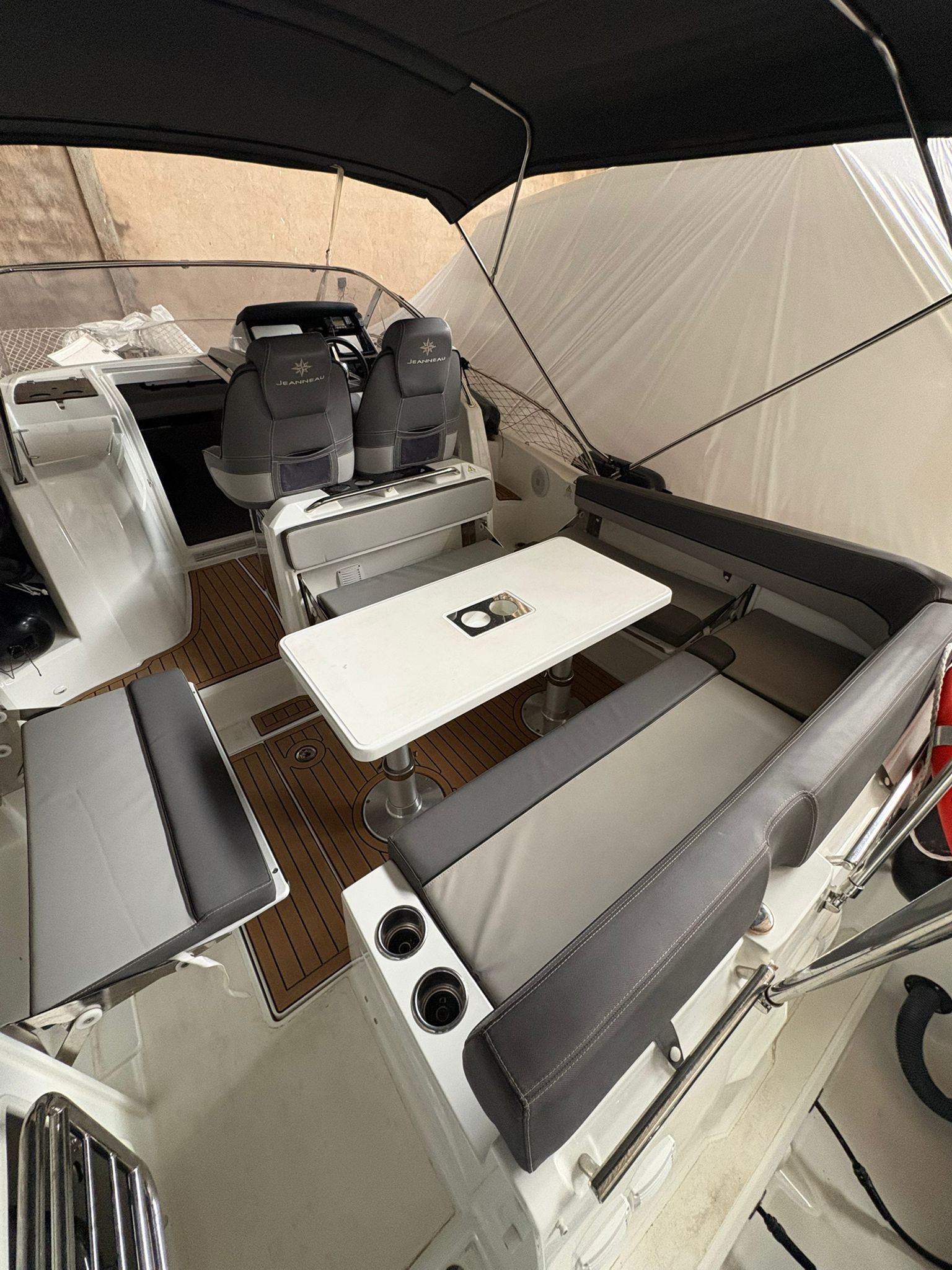 La cabina ofrece un espacio cómodo y funcional, con acabados de alta calidad característicos de Jeanneau, combinando confort, seguridad y rendimiento.