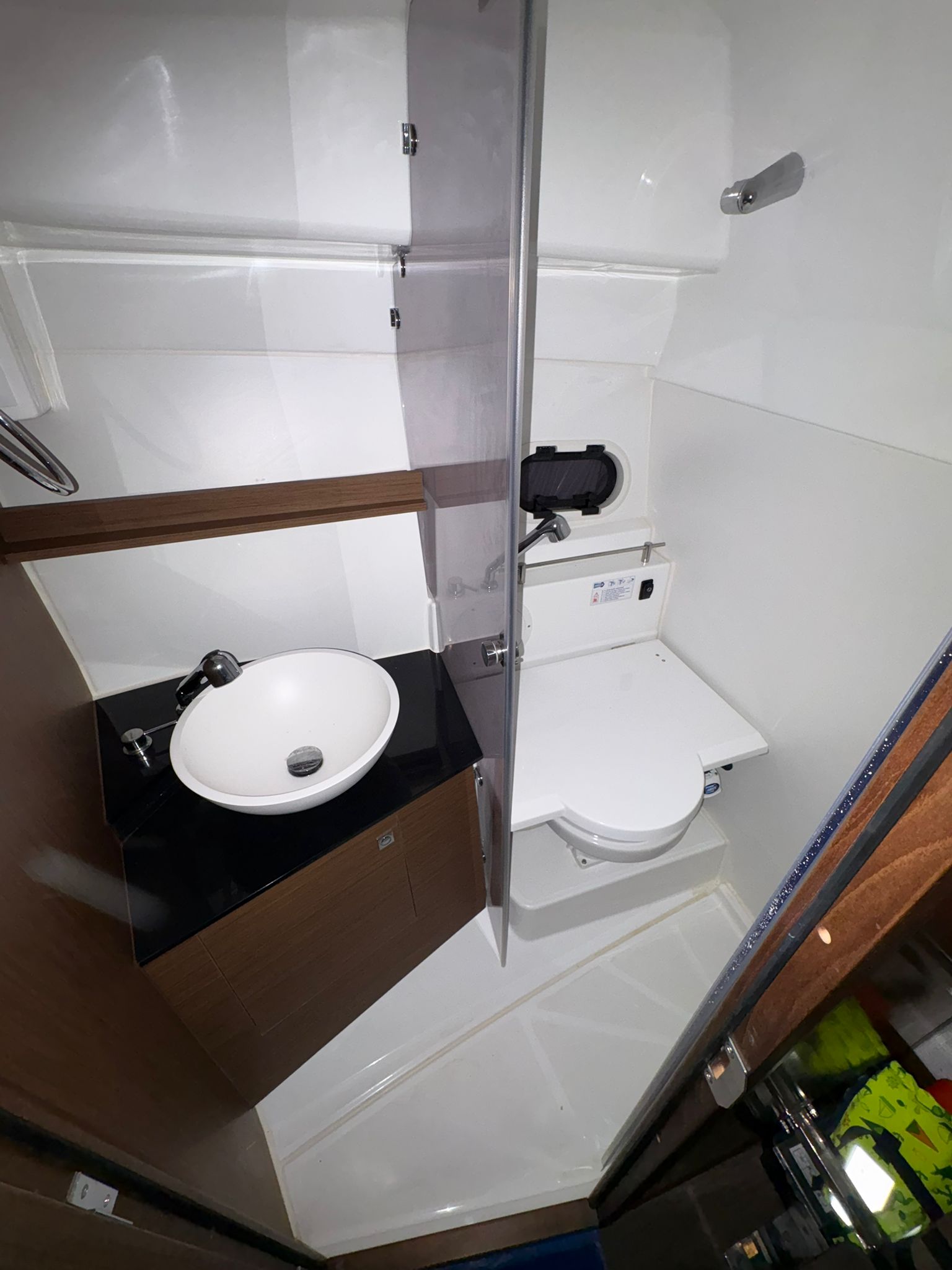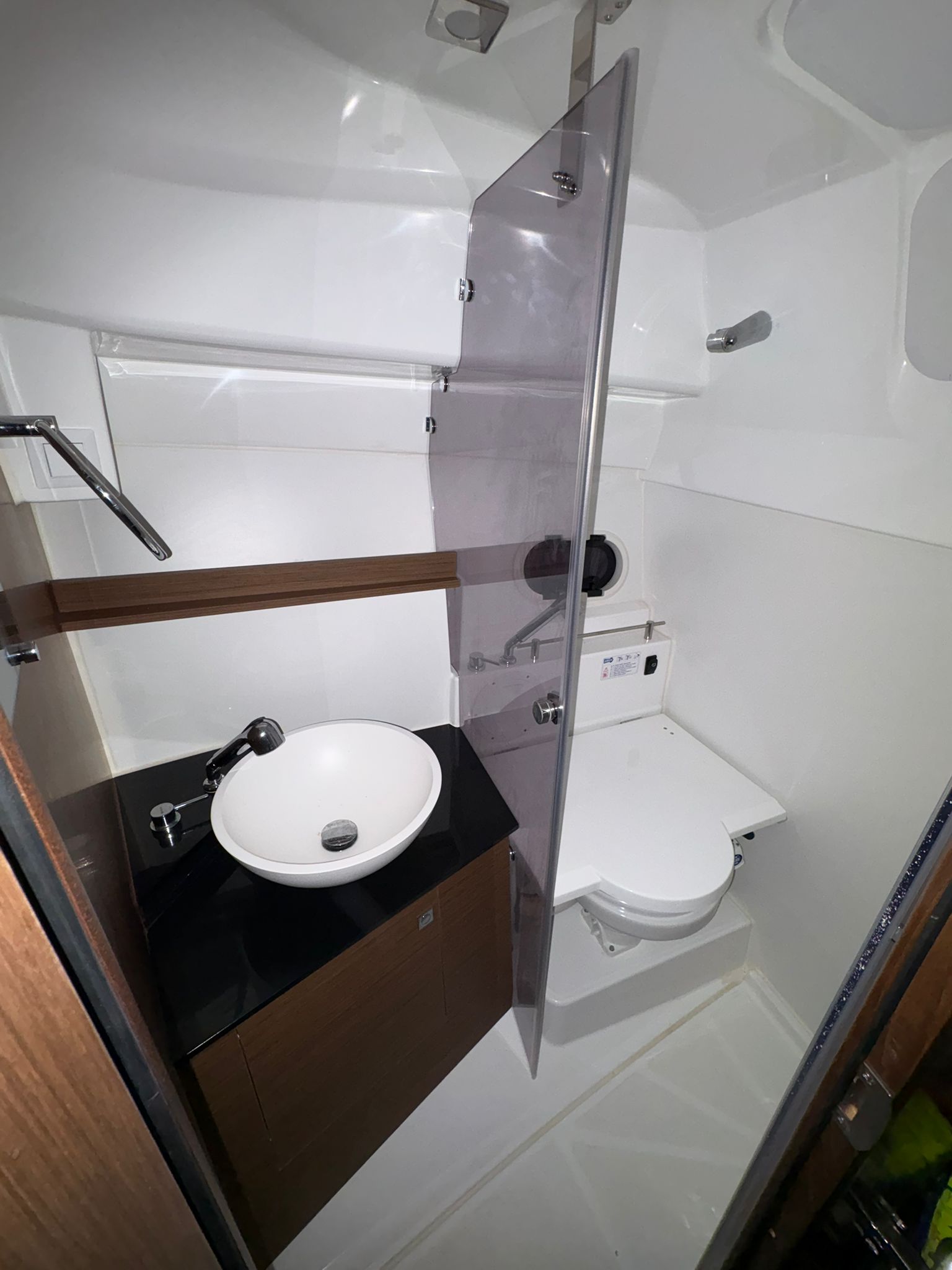 EQUIPO INTERIOR: WC CON DEPOSITO DE AGUAS NEGRAS, CAMAROTE EN PROA, CONEJERA, HORNO MICROONDAS, FRIGORIFICO DE 80 LT.